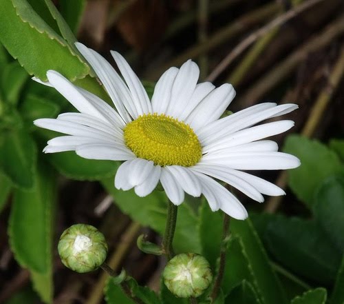 The Nippon or Montauk daisy looks like a Shasta daisy with white flowers and grows two or three feet tall. The difference is that daisy doesn't start blooming until September, and then it blooms right up till frost. In fact, it can take a light frost and still keep blooming.